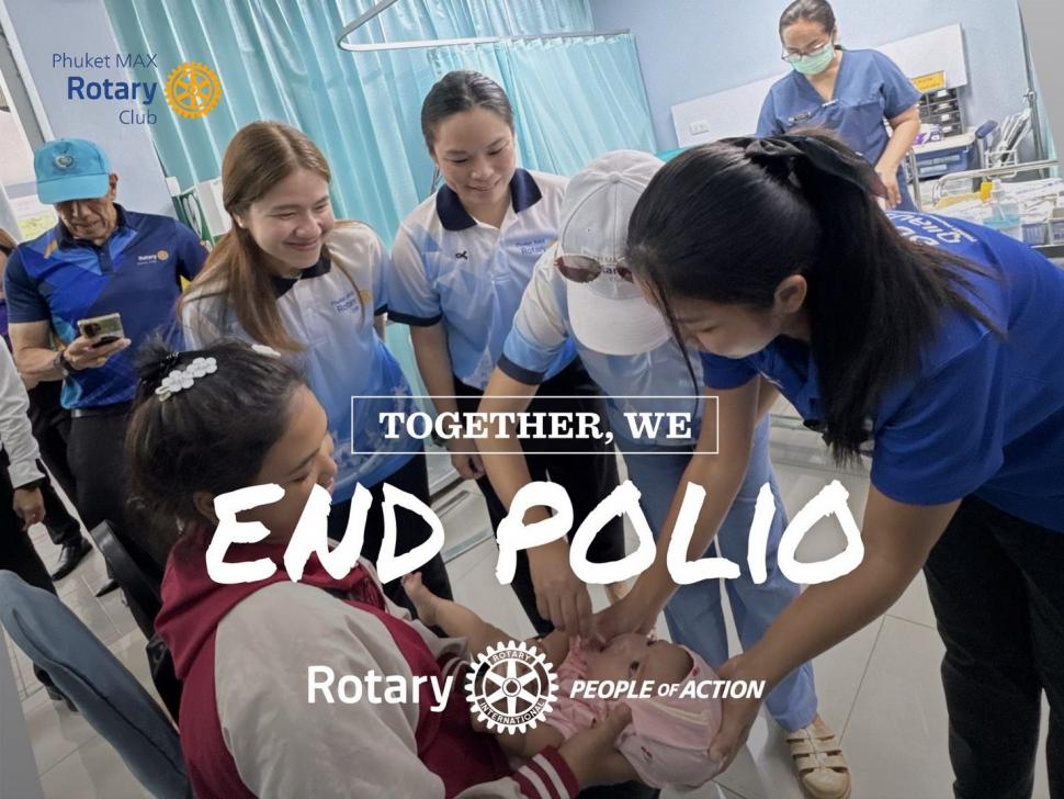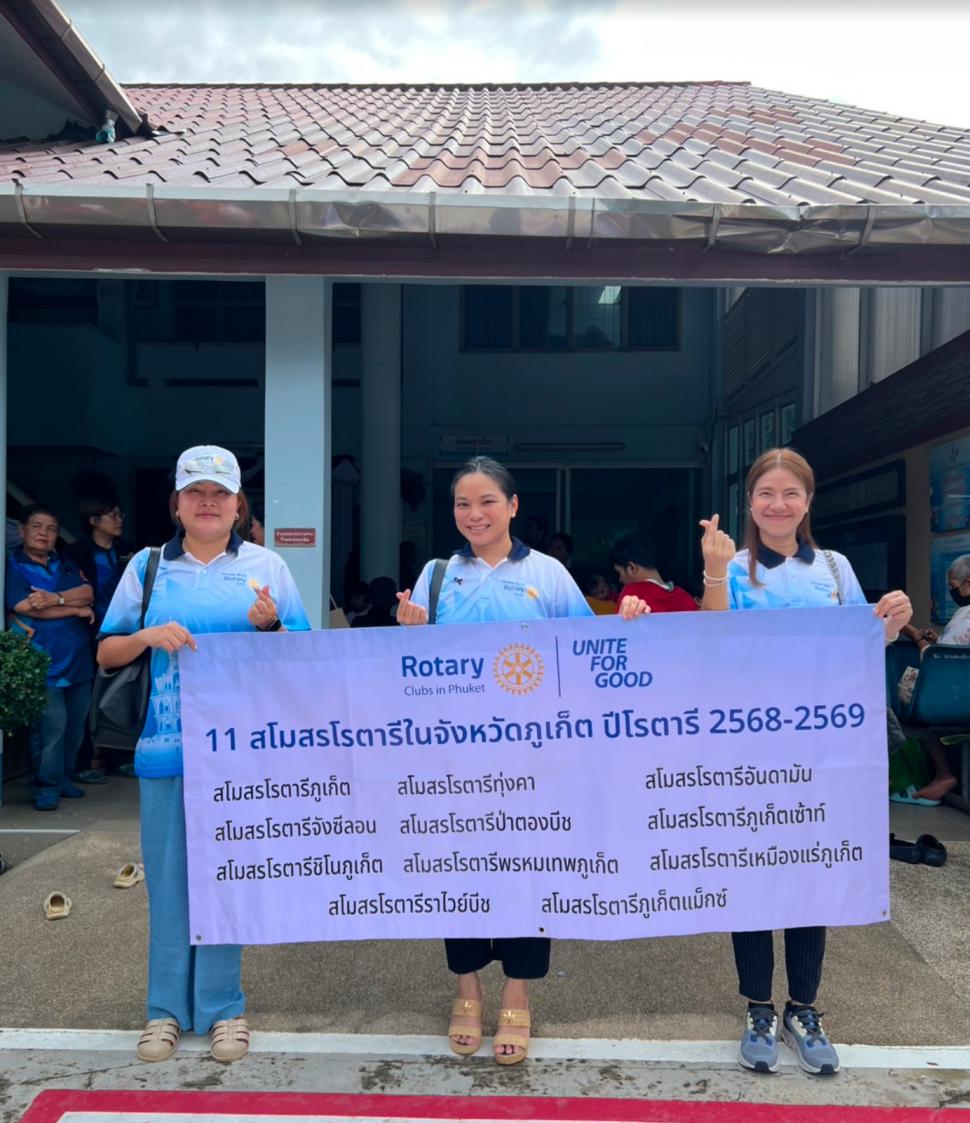 เมื่อวันที่ 13 พฤศจิกายน 2568 นายก ดร ศิริภัทรา พร้อมด้วย รทร วลีรัตน์ประธานฝ่ายสมาชิกภาพ และ รทร อรนภา ประธานฝ่ายต่างประเทศ เดืนทางไปยังโรงพยาบาลส้งเสริมสาธารณสุขตำบลราไวย์ พร้อมด้วยนายกและตัวแทนสโมสรโรตารีอื่นๆในจังหวัดภูเก็ต เพื่อหยอดวัคซีนโปลิโอให้เด็กๆในตำบลราไวย์ ส่วนมากเด็กที่มารับวัคซีนในวันนั้นเป็นชาววพม่า