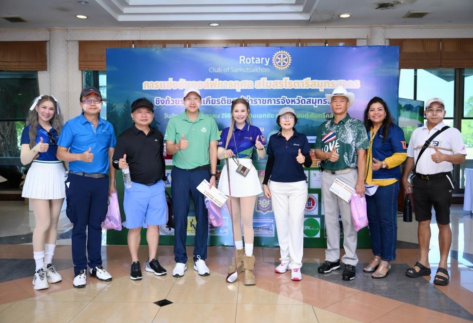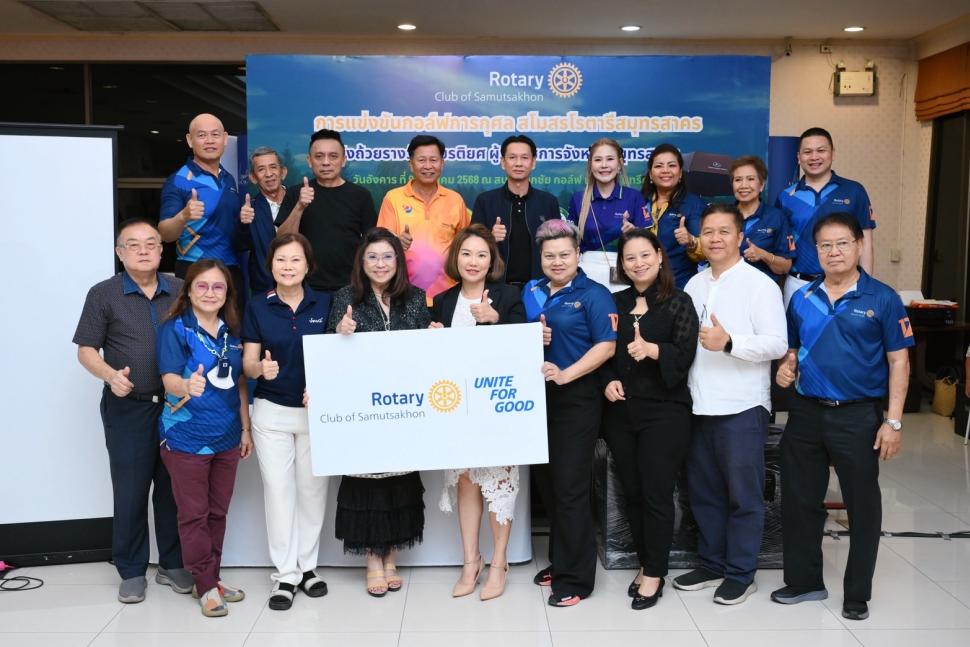 วันที่ 9 ธันวาคม 2568 นำโดย นายกสุภาภรณ์ พัวพันธ์ พร้อมด้วยสมาชิก จัดกิจกรรมการแข่งขันกอล์ฟการกุศลสโมสรโรตารีสมุทรสาคร (รายได้สุทธิจากการจัดกิจกรรมจำนวน 219,786 บาท) ณ สนามกอล์ฟเอกชัย