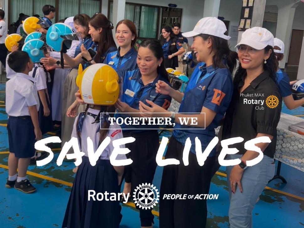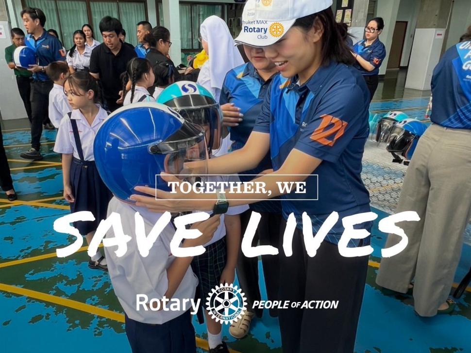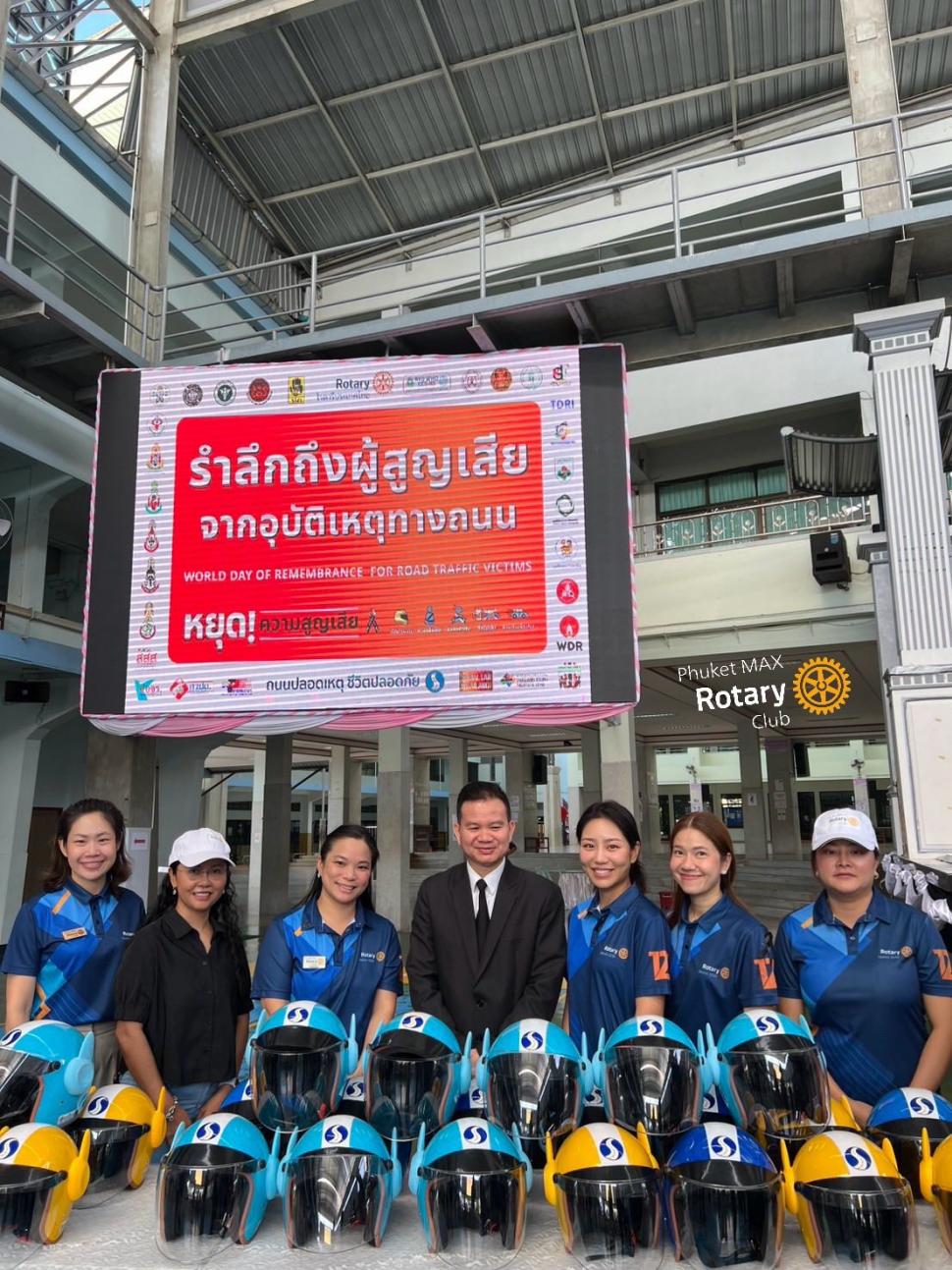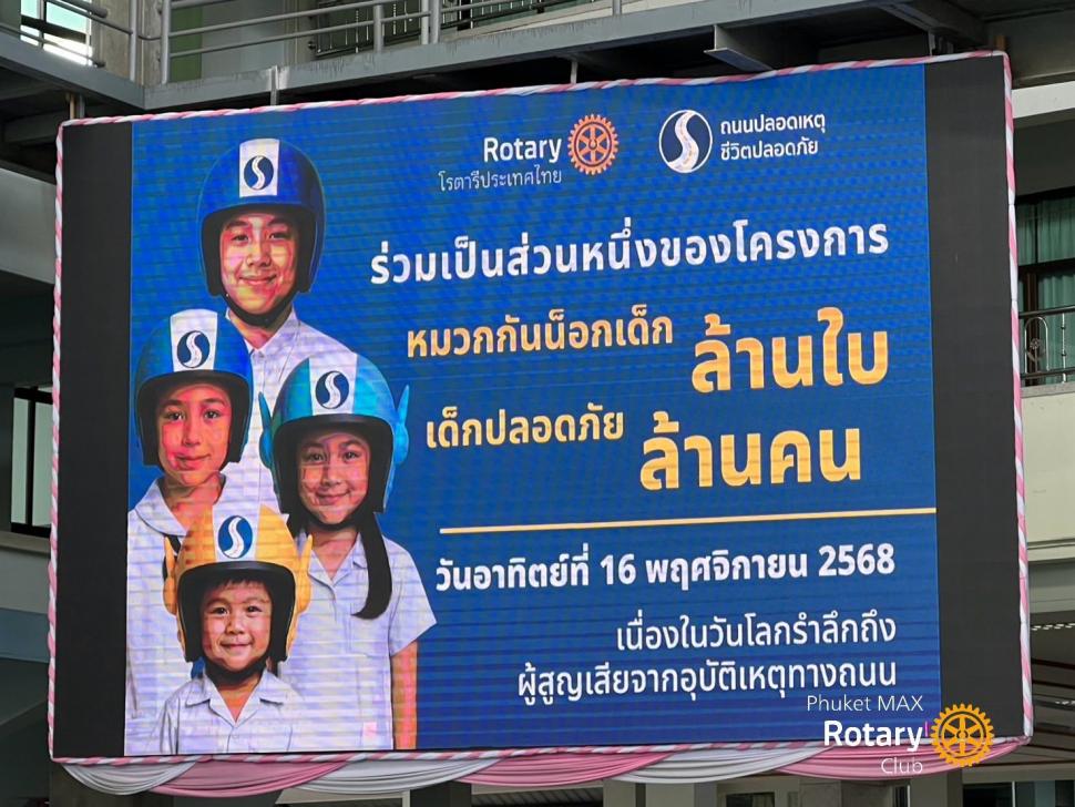โดยในงานได้ร่วมไว้อาลัยผู้ที่เสียชีวิตจากอุบัติเหตุท้องถนนใน จ ภูเก็ต และร่วมแจกหมวกกันน้อก Rotary ที่มีสีสันสดใสให้กับนักเรียน 110 คน จากหลากหลายโรงเรียนภายใต้โครงการ หมวก 1 ล้านใบ เด็กปลอดภัย 1 ล้านคน ซึ่งเป็นหนึ่งในโครงการ Safe Roads Save Lives ซึ่งการแจกครั้งนี้เป็นเพียงการเริ่มต้นของการรณรงค์ให้เด็กๆที่โดยสารด้วยรถจักรยานยนต์ได้ใส่หมวกกันน้อก เพื่อความปลอดภัย