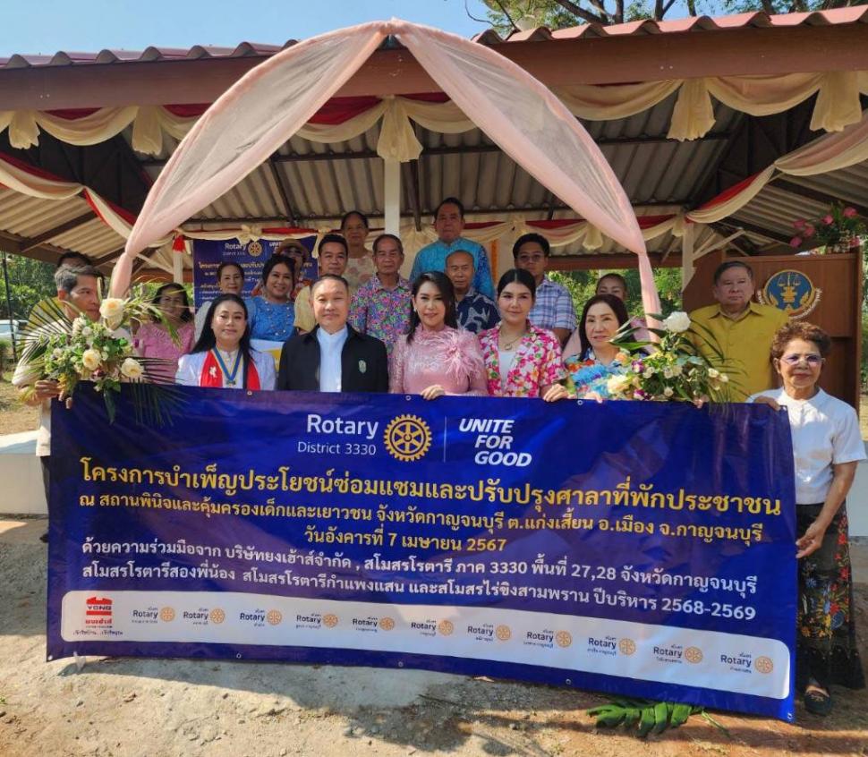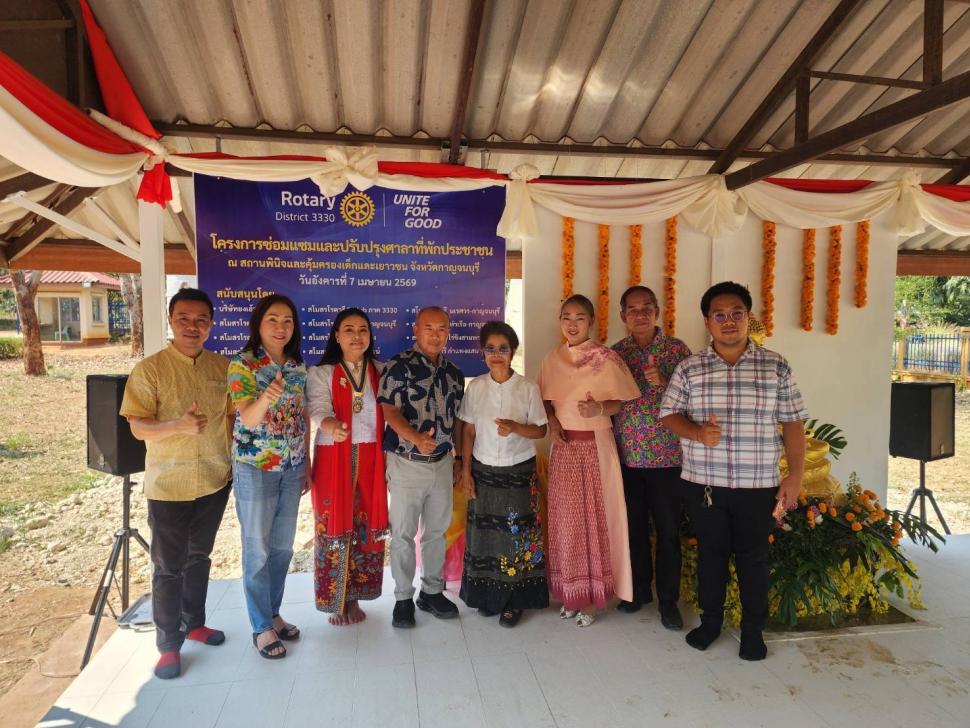 วันอังคารที่ 7 เมษายน 2569 มวลมิตรโรตารีได้ร่วมกันสร้างรอยยิ้มในพิธีส่งมอบ “โครงการซ่อมแซมปรับปรุงศาลาที่พักประชาชน” ณ สถานพินิจและคุ้มครองเด็กและเยาวชน จังหวัดกาญจนบุรี