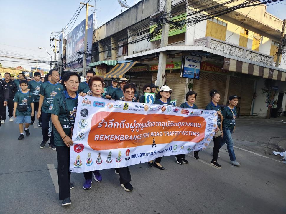 นย.ประไพ ศิริไพศาล นายกสโมสรโรตารีหลักเมืองราช ปีบริหาร พ.ศ 2568 ถึง 2569 พร้อมด้วย นยก.ประจวบ ฤทธิ์แดง และ สมาชิกสโมสร ร่วมเดินรณรงค์กิจกรรม safe road safe life ในวันโลกรำลึกถึงผู้สูญเสีย จากอุบัติเหตุทางถนน
