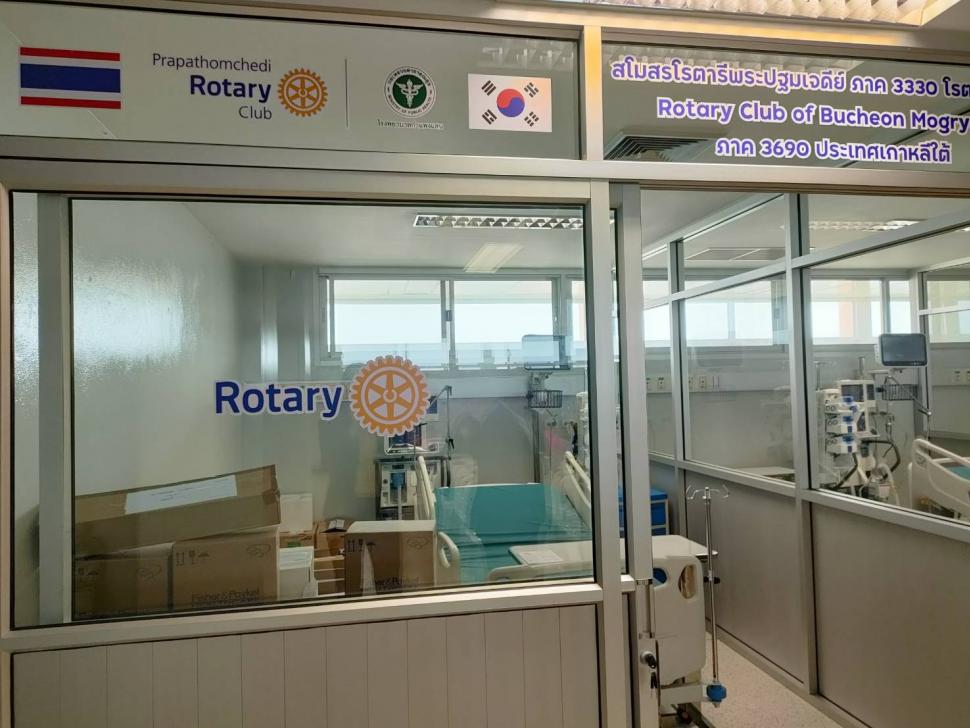 20 มีค.66 สโมสรโรตารีพระะปฐมเจดีย์ ภาค 3330 โรตารีสากล ร่วมกับ สโมสรโรตารีนครปฐม สโมสรโรตารีบางเลน สโมสรโรตารีดอนตูม สโมสรโรตารี Royal Hua Hin สโมสรโรตารีทวารวดี และ Rotary Club of Bucheon Mogryun ภาค 3690 ประเทศเกาหลีใต้ มอบห้องผู้ป่วยวิกฤติ (Intensive Care Unit : ICU) พร้อมวัสดุครุภัณฑ์ทางการแพทย์ Necesssary tools and equipment to care for patients in Intensive Care Unit (ICU) ตามโครงการ Global Grant No.2342158 มูลค่า 3,298,400 บาท (U$D 86,800) ให้แก่โรงพยาบาลกำแพงแสน อ.กำแพงแสน จ.นครปฐม